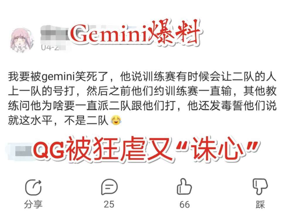原标题:Gemini分享QG的“黑暗”时刻:曾经挨打又被“诛心”,苦不堪言!