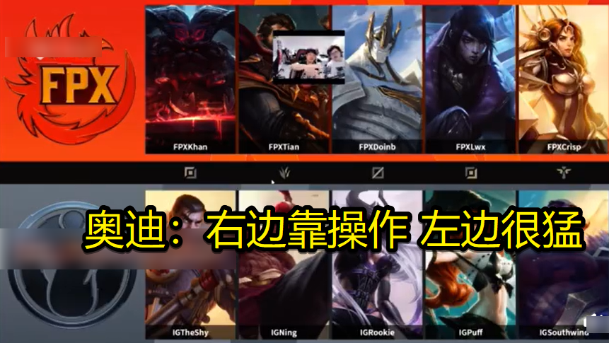 对于阿布这位教练来说,最关注的自然是双方选用的阵容。在阵容确定下来之后,阿布自己还没有分析,就准备考一下奥迪,让他分析一下IG和FPX阵容都有什么特点。而奥迪在思考一下之后,表示:右边的阵容靠操作,左边的阵容很猛!
