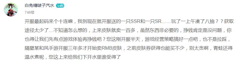但是,也许是停服时间过久,而补偿与开局福利相对其他卡牌游戏来说太少(开服送单抽...),玩家持续在游戏社区表达自己的不满,游戏的TapTap评分很快跌至6分以下。