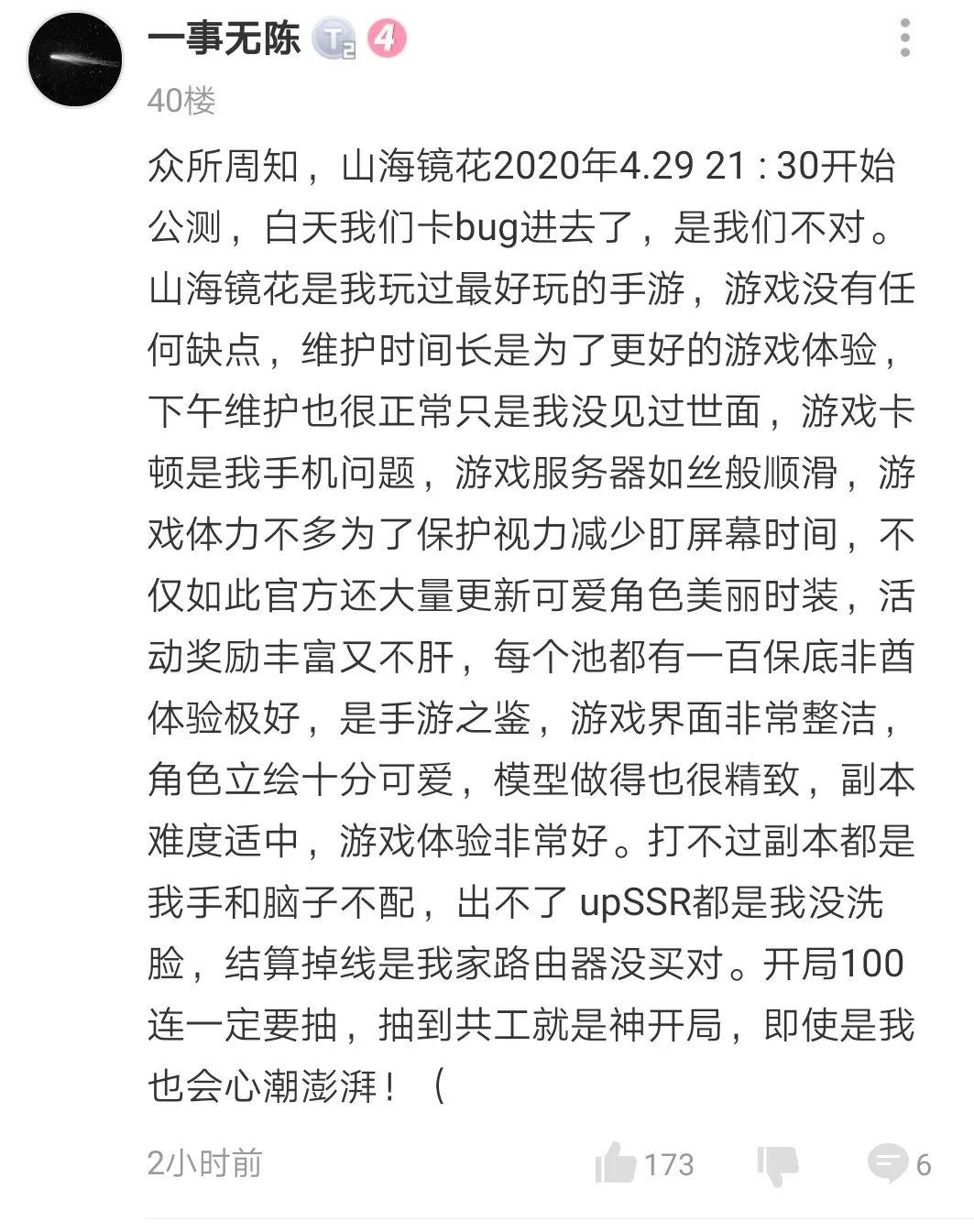 在这种攻势面前,玩家们选择了集体失忆:「《山海镜花》是我玩过最好的游戏」。