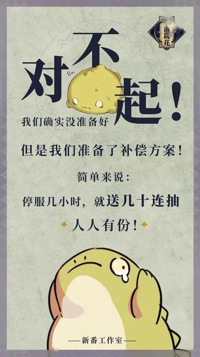 晚上5点整,《山海镜花》顺利开服,葡萄君也兴冲冲地想上线试试手气。然而玩了还不到半小时,甚至都没能体验到自由抽卡的部分,游戏就提示我「即将紧急维修。」葡萄君退出来一看,才发现项目组又续了4小时......