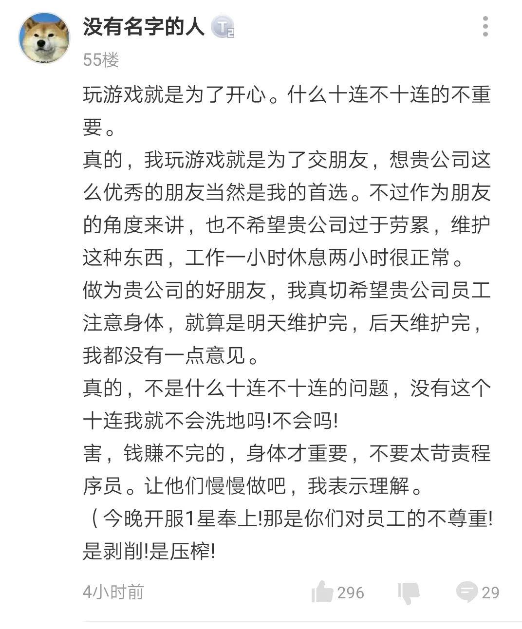 「希望贵公司不要过于劳累,明天、后台开服都是可以的。」