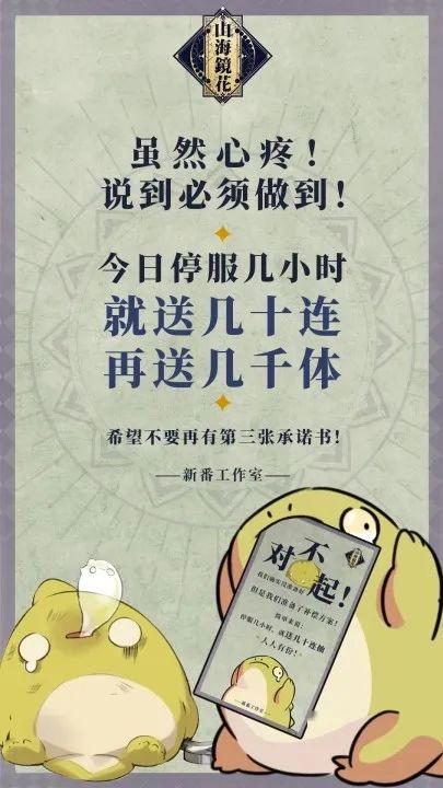 截止晚上10:30,《山海镜花》仍未重新开服,并继续加码了补偿。