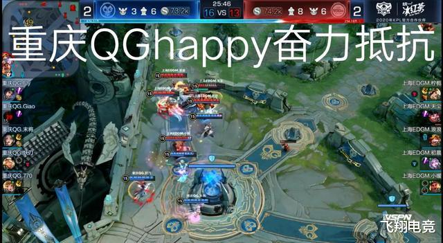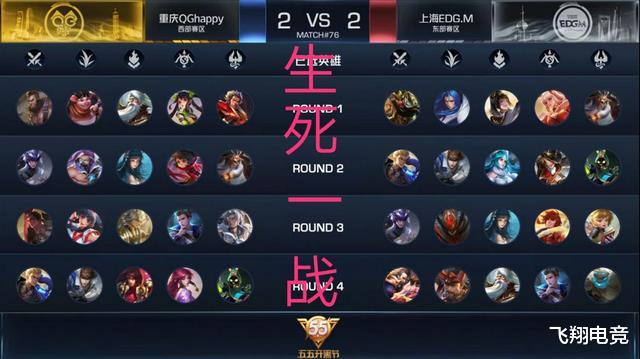 在今天的这场比赛中,双方的分数咬的非常之近:第一局首先是重庆QGhappy战队获胜;第二局则是上海EDG.M;第三局QG又扳回一局。第四局EDG.M不甘示弱反胜一筹,到了此时,双方具是杀红了眼,都拿出了自己的最强实力奋力拼搏。