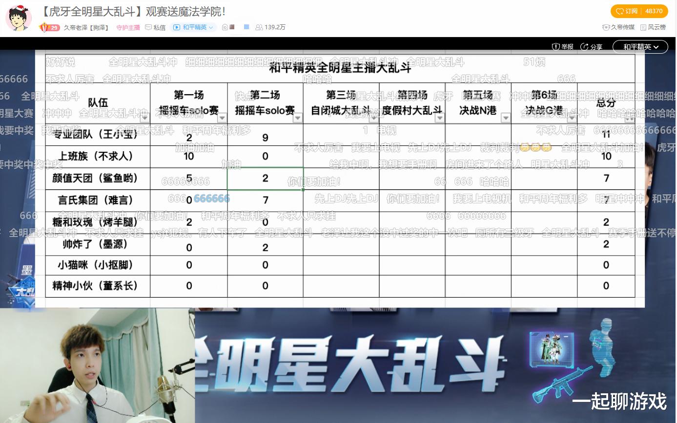 由于《和平精英》迎来1周年的缘故,首届“全明星大乱斗”也正式开启,8大超级人气主播组成战队进行比赛,一时间引来不少“吃鸡”玩家们的高度关注~而这一次呢,不求人战队拿出了自己的实力,与晚玉再次合体,实时分析战局,并且聆听脚步声来报点,目前总分数排在8大主播战队中的第二名。