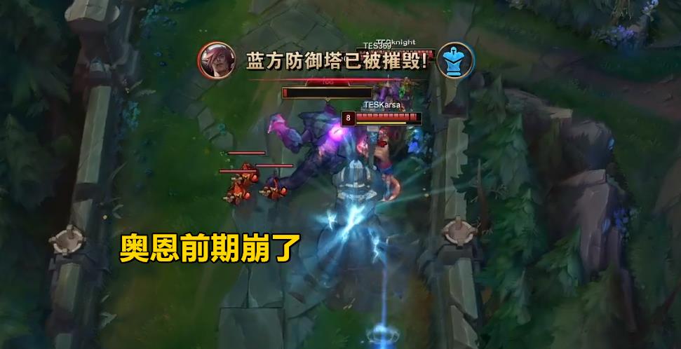 奥拉夫开局三级直接帮奥恩抓上,逼出了腕豪的闪现,盲僧随后也来,但是奥恩用WE躲了全部技能;盲僧偷第一条小龙,奥恩TP下来但是已经打完了,JDG前期节奏断了;第一条先锋刷新,滔搏直接开打,拿下后和京东开团,厄斐琉斯拿下了奥拉夫的一血;滔搏前期打得太好了,上路抓死了奥恩让,然后放峡谷先锋推掉了上一塔和二塔,再转线到中路吃到了一半的镀层,此时经济领先近4K了!