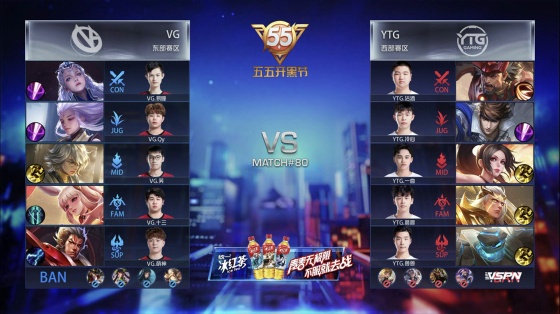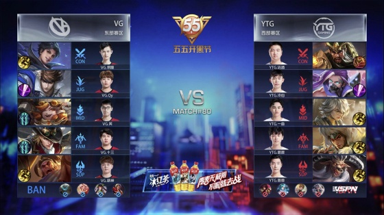 2020年KPL春季赛第七周第四个比赛日第二场比赛由VG对阵YTG,两支队伍位列各自战区的第六名,距离季后赛仅差一个位次,本场比赛两支队伍势必将碰撞出无限火花。最终,VG连下三城战胜YTG,终结了自己的两连败,收获赛季第三场胜利,YTG则遭遇了三连败。