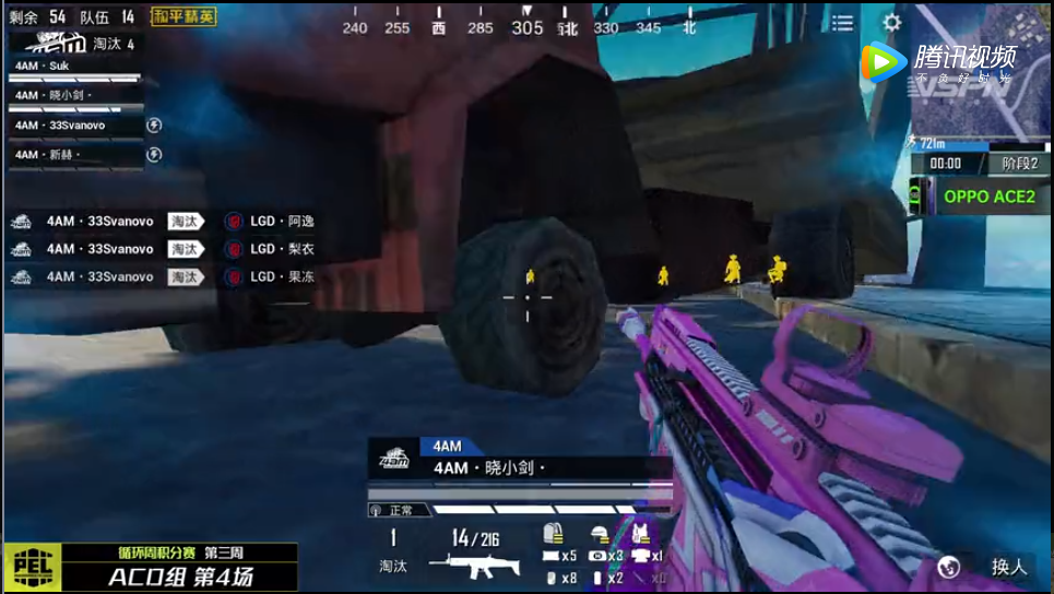 较比于前几个战队的出色表现,呼声颇高的4AM的PEL之旅则走得异常坎坷。早期在第三周前两场比赛时,4AM就凭借着出色状态豪夺30分,但是其在后续的比赛中的遭遇确实令人扼腕叹息。先是遭遇天谴圈,4AM战队成员不段转移寻求战场突破口,却屡次遭遇到多队夹击,在转移中失去先机惨遭淘汰。