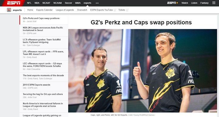 原标题:角色互换:《英雄联盟》G2战队Perkz与Caps将互换位置