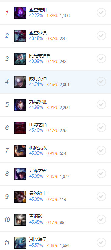 冰女限制乐芙兰的效果其实很一般。在第四把选出冰女的时候,解说就说了:这样对杰克辣舞输出的压力就太大了。其实这是解说的场面话,说白了就是中单不想C,教练不想背锅,求稳就好。在这里贴一张OPGG里对位妖姬的优势英雄,丽桑卓排名23