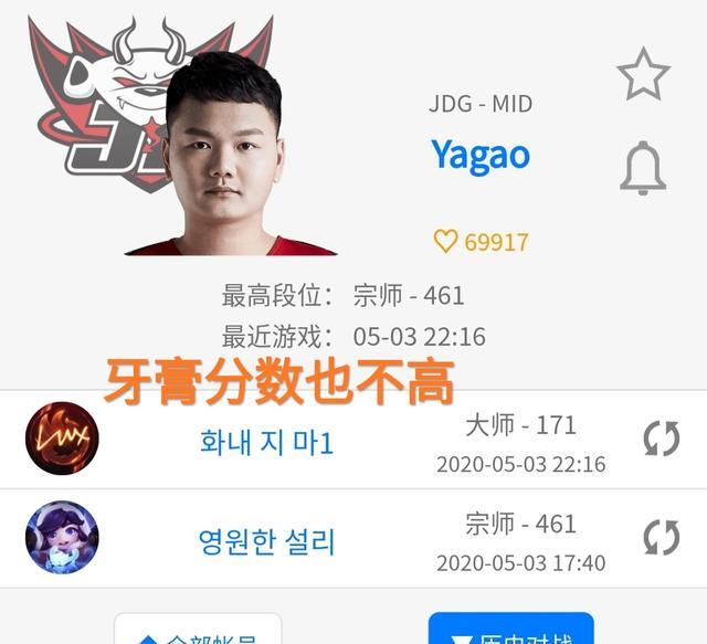 就在最近,他也是开启了直播,进行韩服rank的时候聊到了韩服分数,他表示其实分数并没有太大的作用,并且在直播的时候还笑着表示jdg战队的中野组合韩服分数加起来才200分,而tes战队的中野组合加起来已经2000多分了。而且纵观两支战队的整体分数,tes战队人均王者,除了阿水是宗师以外,最低的预言家也有600多分。而jdg战队分数咋不是很高?最高的是替补上单705,有1200多分。