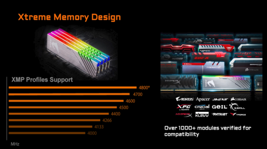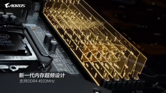 技嘉AORUS两套内存技术双管齐下,技嘉AORUS Z490实现了DDR4 4933Mhz的超高频率,并且加强与市面众多内存品牌的兼容性测试与优化,完美释放DDR4内存的潜能。