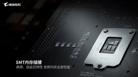 技嘉产品经理Andy认为,过去大多数的厂家的内存走线都是采用主板PCB表面布局的方式,容易受到干扰产生错误。为应对这种情况,技嘉AORUS Z490重新设计,直接将内存线路藏在PCB内部,同时采用了SMT Design技术,让内存的模组针脚不再暴露于主板背面,不仅让主板的背面更显得干净整洁,同时进一步降低内存的杂讯。