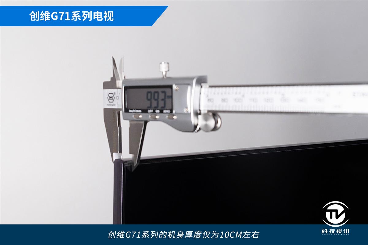 经过实测,得益于出色的设计,创维G71系列的机身厚度仅为10CM左右,重量也控制在了非常轻盈的水准,夫妻两人可以非常轻松地搬动这款电视。