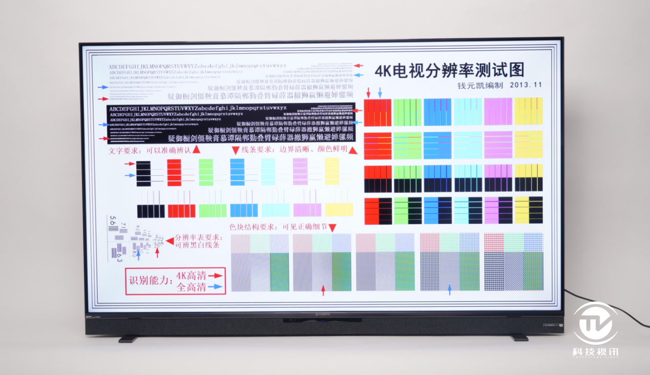 正如上图所示,代表4K的达标水准的红色箭头对应的文字清晰无比,而且更细小的字体也是一览无余,就连最为细小的中英文字符也都能够得到极为清晰的展现。可见创维G71系列的4K分辨率并不仅限于达标而已,事实上处于目前顶格的水准。