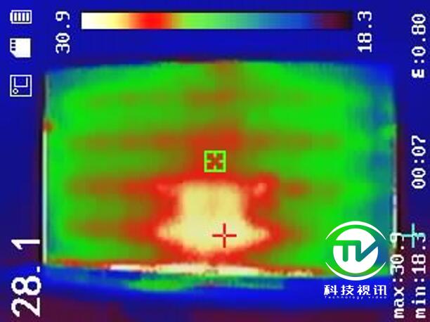 经过三个多小时的体验后,编辑发现这款创维G71系列电视在发热方面的控制也是非常给力的,经过热像仪实测,最高温度仅为31摄氏度左右,看来用户休息天在家追上一整天的剧也完全没有压力。 另外从热像仪上分析,这款电视采用的散热方式为底部散热,这样的设计在挂墙时更为有利,能够避免背部散热时热量过分聚集在电视后背的问题。