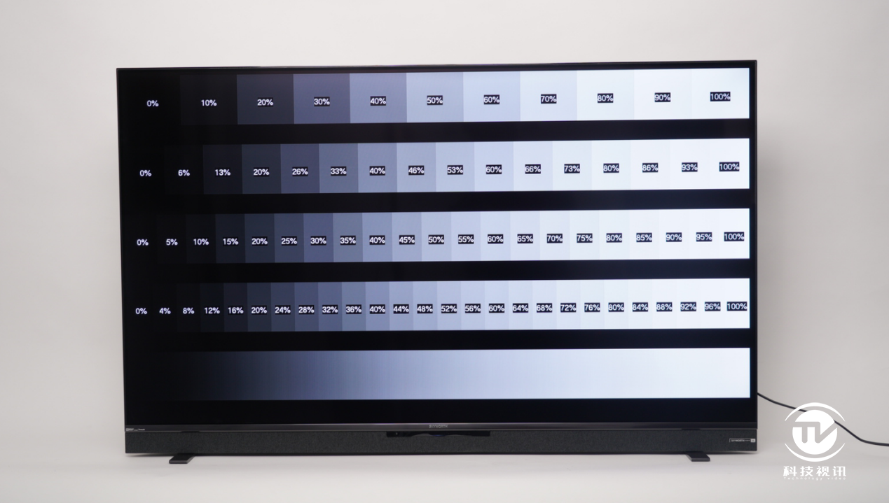 创维G71系列在灰阶方面的表现也比较出色,4%差异相邻区块的界限肉眼可见,并且能够显示最暗的4%和最亮的4%之间的区别。