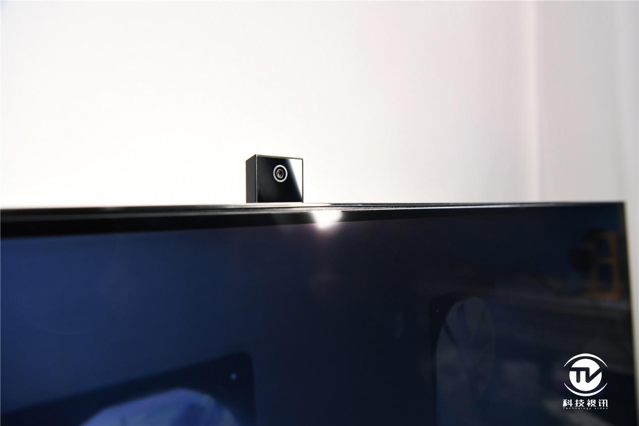 在电视上的顶部内置了一个升降式AI摄像头,当用户进行视频聊天、健身等应用时,摄像头能够自动升起, 有了它电视不仅能够进行远程视频通话,便于社交沟通和企业会议,而且借助AI技术还能够与用户实现神奇的互动功能,这一点在后文中会有更多的详细介绍。