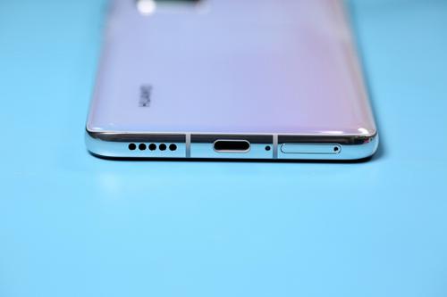 底部有扬声器开孔、麦克风、USB-C端口和SIM卡槽