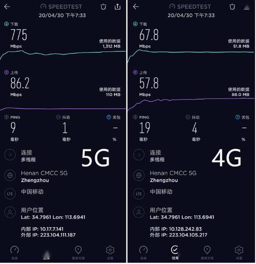 以下是笔者在同一测试地点分别进行的5G和4G网络下的测速。可以看到在我们的测试环境当中,华为P40的5G网络下载速率是4G网络下的10多倍。