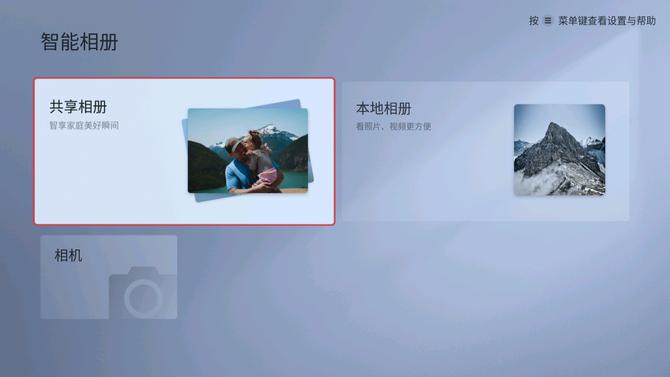 此外,拍摄完的照片会保存在智能相册APP内的“本地相册”里面,也可以把手机上的照片添加到“共享相册”,直接在电视上查看手机内的照片,与家人一起分享照片和快乐时光。