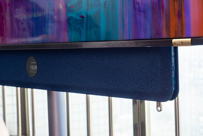 TCL·XESS旋转智屏采用的是屏幕和音箱分离设计,在屏幕的背面是大尺寸的日本安桥独立音响,表面覆盖了一层专业音响网布,有种北欧文艺风的感觉。这种工业与文艺碰撞结合的设计,带来的感觉还是挺不错的。