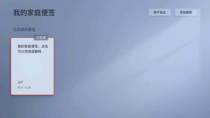 还有家庭便签也是一个挺不错的功能,可以直接用语音添加便签,再预定的时间里提醒你买菜、做饭,不用担心看剧太专注忘记做饭。在手机APP上也可以预约想看的电影节目,预约的时间到了就会自动播放,感觉有点像手机的闹钟提示功能,还是挺方便好用的。
