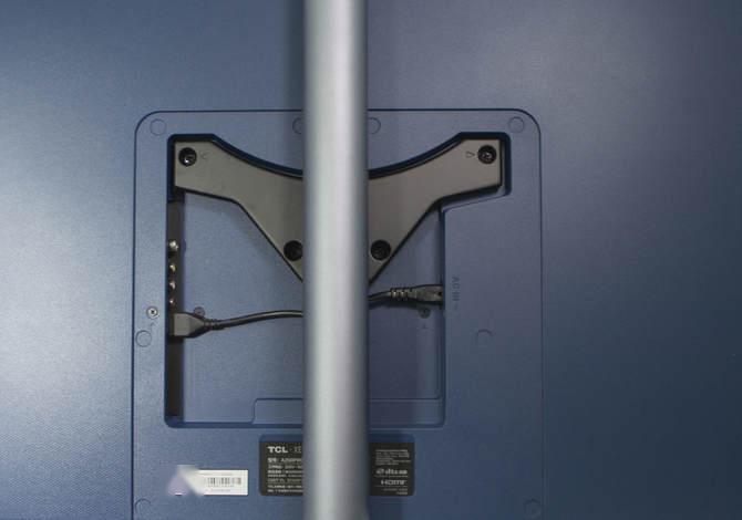 TCL·XESS支持两种安装方式,壁挂式和落地支架,我这边选择了支架安装。金属支架的造型方面也非常简洁,支柱还做了收纳设计,安装完成后可以将各种线缆收纳进去,让整体看起来更加简洁。
