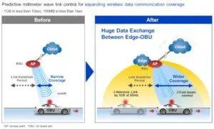 创新:新60GHz WiFi系统允许V2X应用即时连接,努力在其ITS(智能交通系统)中使用60GHz波段的毫米波WiFi,补充DSRC(专用短程通信)和4G/5G网络。新60GHz WiFi符合IEEE802.11ad标准,并利用天线指向性控制和无线链路控制技术,支持比现有WiFi快10倍以上的高速通信,并允许与大容量数据无缝传输/接收内容,如视频和3D地图