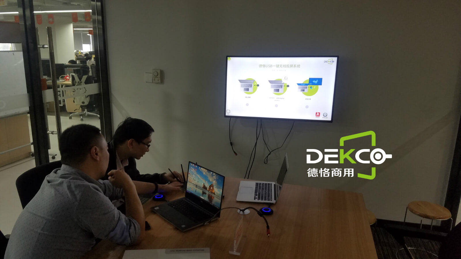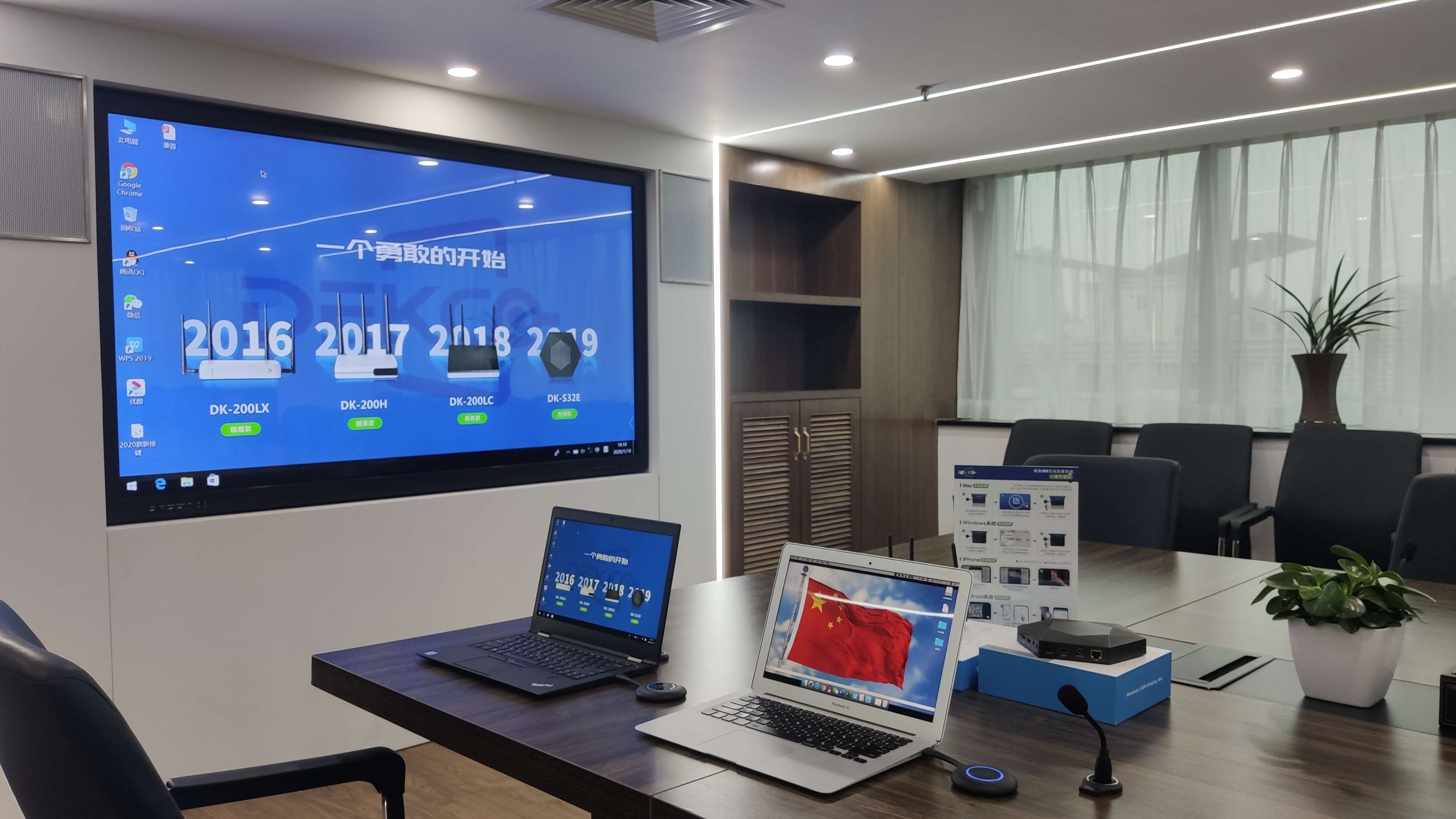 在上一篇文章中,小编为您详细介绍了关于《深圳市正合奇胜科技有限公司连夜赶造拼接屏为法国总理来访深圳“接风”》相关知识。本篇中小编将再为您讲解标题会议室笔记本电脑无线投屏商用级解决方案还得用德恪USB一键投屏。