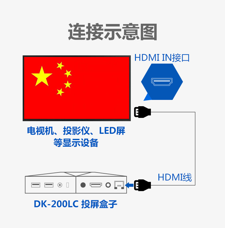 也要给大家展示德恪无线投屏盒子商务款,型号【DK-200LC】最高支持4K分辨率输出,去看看它的简介吧。如下图: