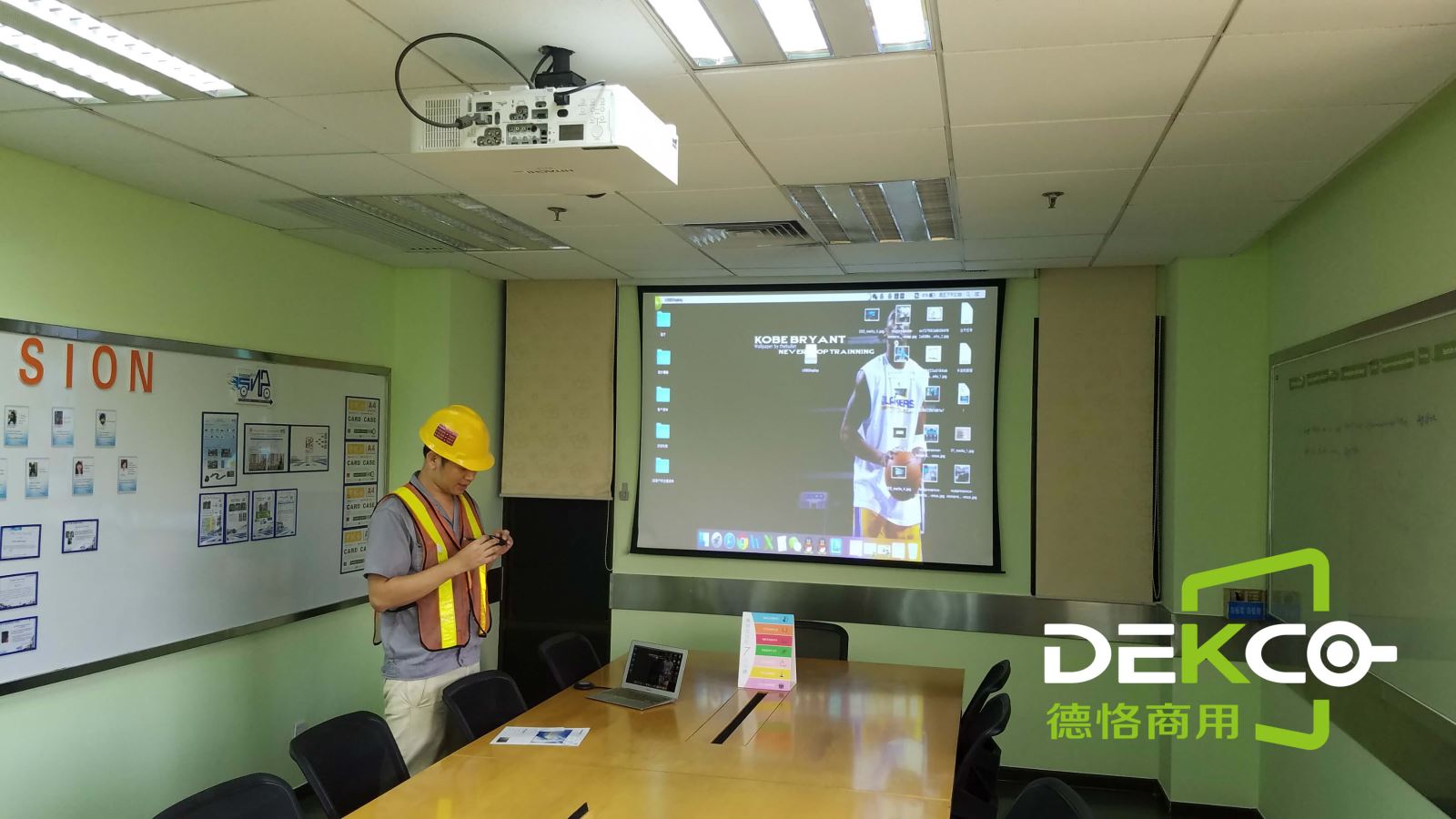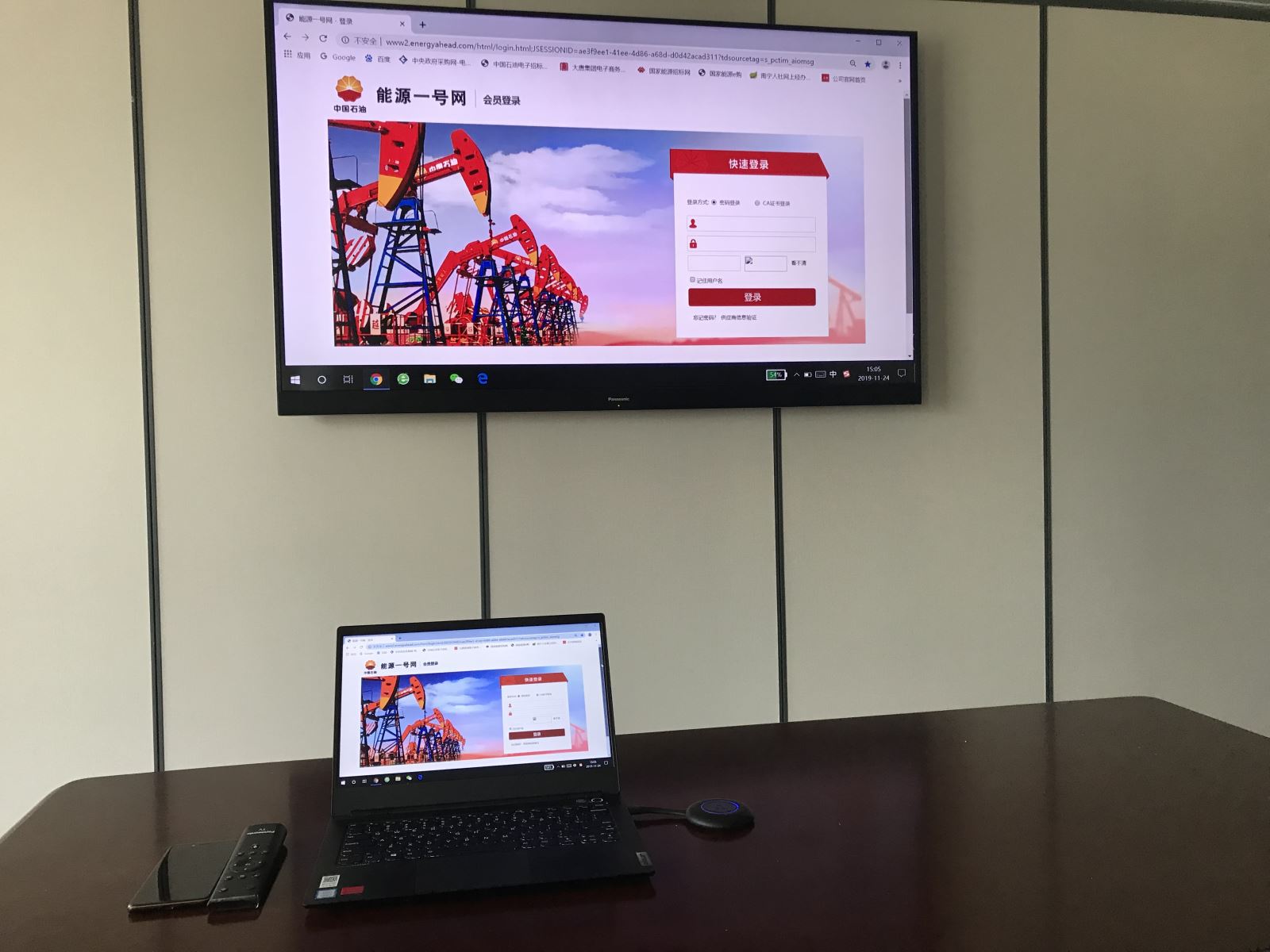还有考虑到目前绝大多数企业用户的会议室还是采用的投影机显示,小编也给大家录制了笔记本电脑结合投影机应用的实操展示: