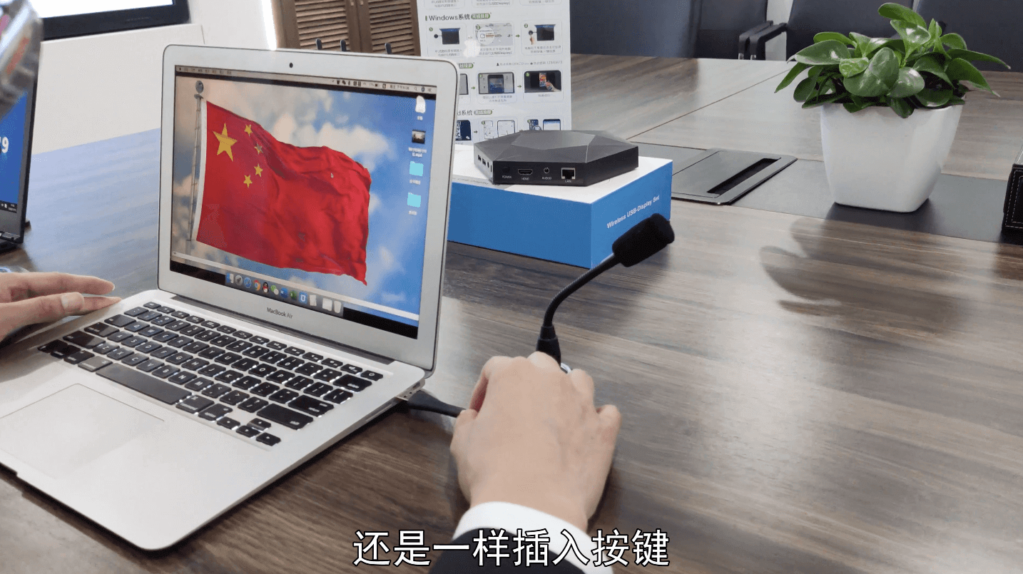 USB投屏按键插入苹果Macbook系列苹果笔记本后的操作步骤依次展示: