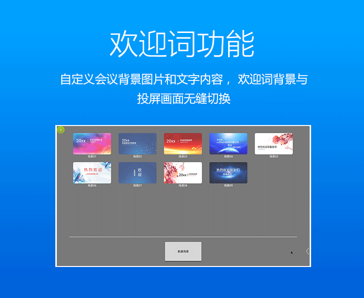 考虑到商务会议场景的特殊性,“欢迎小应用”,更为企业会议应用场景贴心准备。接待客人的会议,欢迎词必不可少。欢迎小应用为用户轻松搭建欢迎界面。