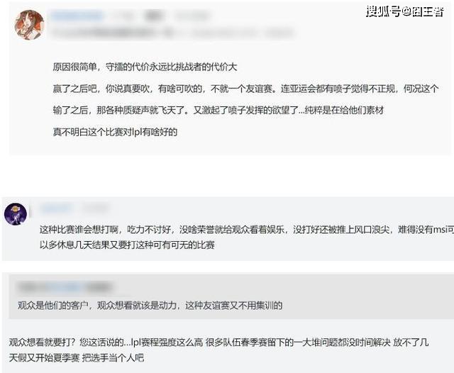 对于这种既无荣誉又无奖金的“线上友谊赛”,国外粉丝反映怎么样,囧王者是不知道的。但是国内战队选手和粉丝,其实大多是比较抵触和反感的。借用S9冠军中单Doinb的话说,那就是“赢了没荣誉,输了还会被喷,不想参加”。