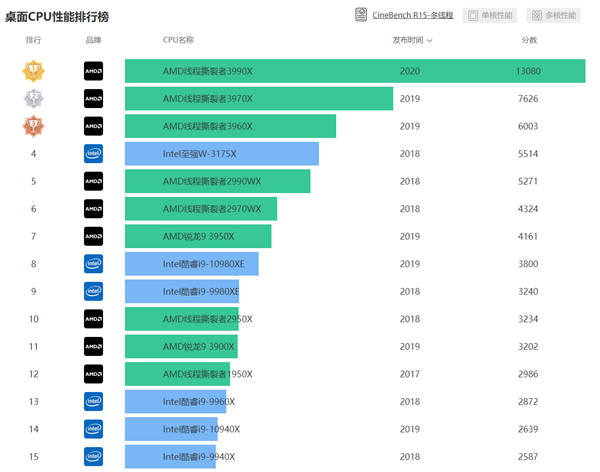 这已经接近12核心24线程锐龙9 3900X的性能了,并超过了16核心32线程的一代线程撕裂者1950X。