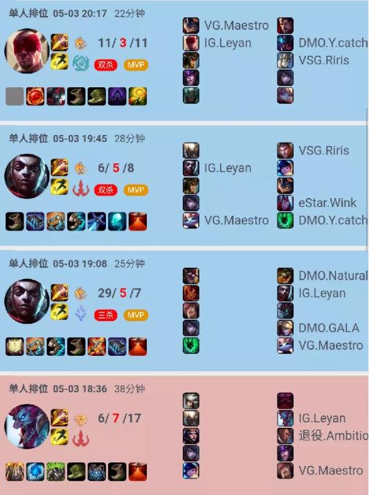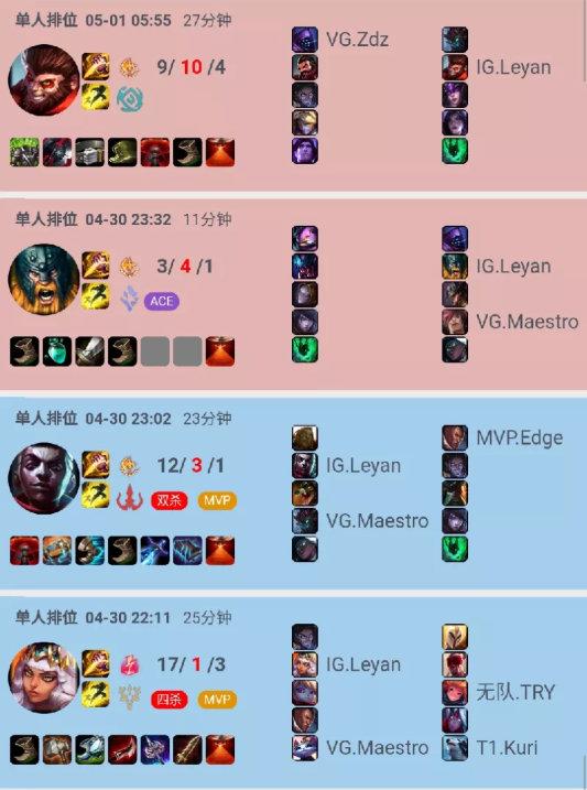 近日作为IG春季赛的首发打野Leyan跟VG辅助小胡已经双排数天,小胡这是要来IG的节奏么?假如小胡来了那IG辅助就可以组团打麻将了。不得不说IG辅助位置竞争实在太激烈。
