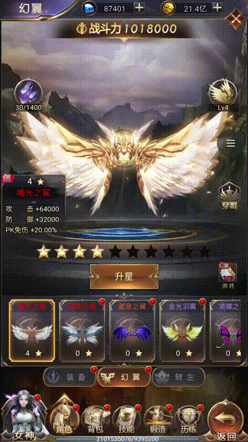 多款风格各异的炫彩幻翼,随心切换,尽情彰显个性魅力,更有华丽时装同步搭配,自由穿戴百变造型;时装幻翼升星打造,暴增强劲属性,坐拥炫酷外观,闪耀出击!