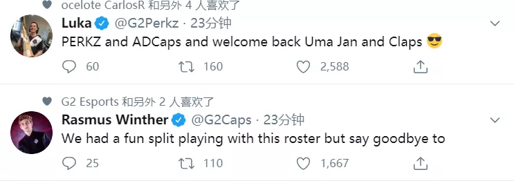随后G2的官推Perkz以及Caps也是相继发文感慨,总而言之就是G2将会回归到了之前的王者阵容,Caps再次重掌中单雷电,那个在S赛中被誉为“狂小P”的男人也是即将回归到我们的视线中!只能摇起来就完事了嗷!