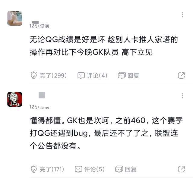 QG本身也不想通过这种方式赢得比赛,网络卡顿,游戏BUG这种事情谁也避免不了。但是偏偏每次出现这种事的时候受益的总是QG,包括这次春季赛GK和QG的比赛中白起的二技能出现了BUG导致GK开团失败也是如此。只能说QG的运气比较好,总是能成为受益的一方,但是口碑确实会受到影响,也是有利有弊吧。