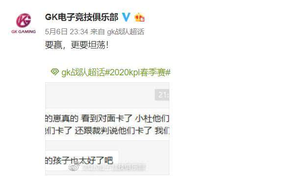 编后语:关于《GK称“要赢,更要坦荡”,对面卡了就停手,网友:和QG相比高下立判》关于知识就介绍到这里,希望本站内容能让您有所收获,如有疑问可跟帖留言,值班小编第一时间回复。 下一篇内容是有关《盘点王者荣耀S19最强上分组合,团战可以2打5》,感兴趣的同学可以点击进去看看。