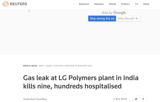 原标题:快讯!韩LG公司在印度一化工厂发生化学气体泄漏,致至少9死、数百人被紧急送医