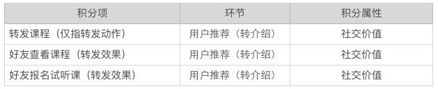 不同授课模式的公司,商业模型也不一样,所以每个环节的积分项设置,也是不一样的。