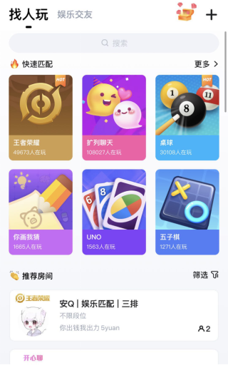 以TT语音为例,2014年切入手游社交领域后,他们便瞄准了“游戏社交”这个方向。事实证明,在年轻玩家社交“孤独”的大背景下,陪玩、语音开黑这种精准的游戏社交提供了一个可以交流互动、表达个性的出口。