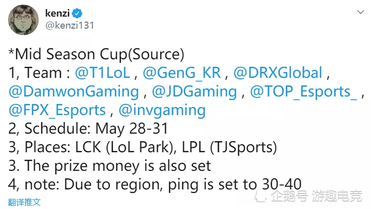 原标题:有比赛看了!LPL和LCK各派出四支最强战队,名为季中杯!