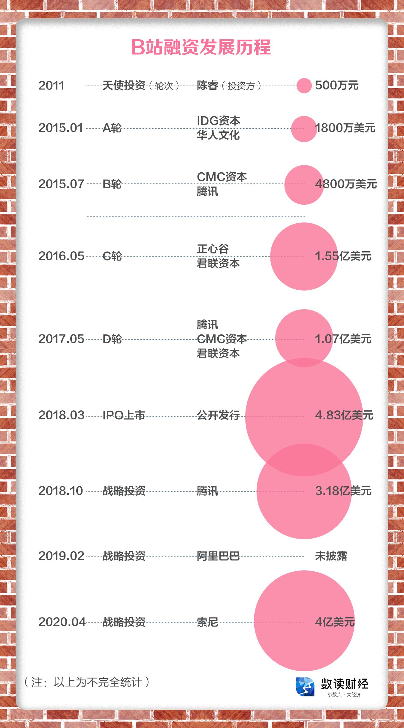 这些破圈尝试不断吸引资本入驻。在2015-2017短短两年内,B站就获得了四轮融资,总金额约5亿美元。