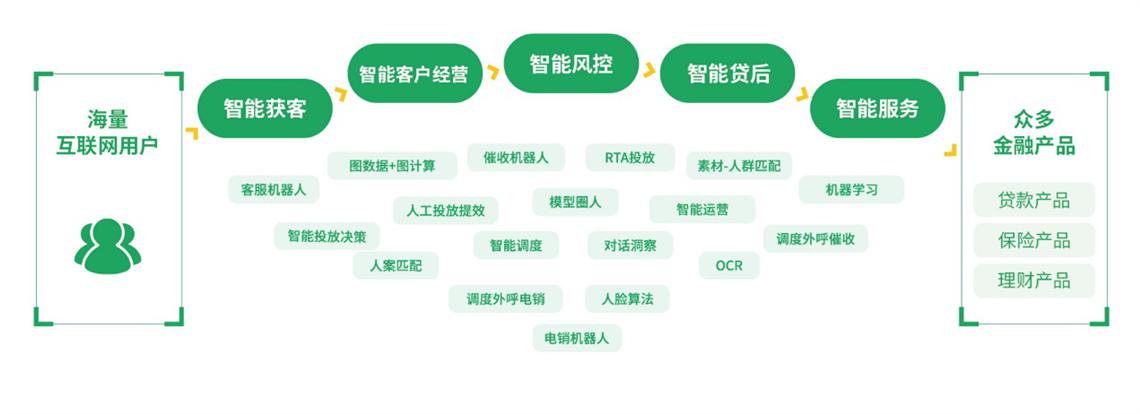 最后一个环节是各种服务,包括智能客服、贷后沟通、保险顾问等各种与用户的沟通服务。