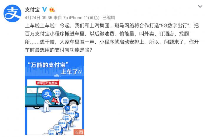 不过前几天,支付宝小程序高调宣布登陆小鹏 P7 以及荣威 RX5 PLUS 的 VENUS 系统。至此,支付宝在车内的战略才变得清晰起来。
