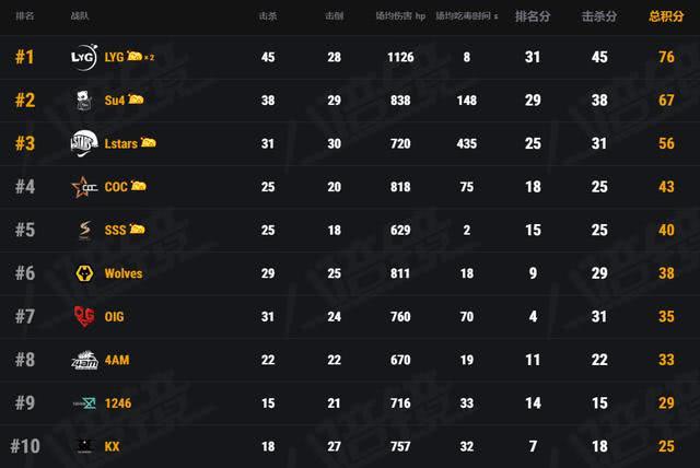 原标题:PUBG黄金赛总决赛:LYG两连鸡占据积分榜一,Su4多次进圈稳定上分