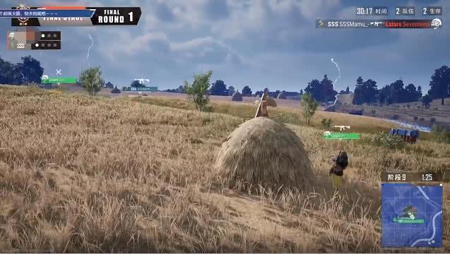 第一局比赛中,八阶段的安全区刷新在农场西侧的麦田,由于地域辽阔导致战斗比较激烈。仅剩下OMG、SSS和Lstars三支队伍,SSS由于处于圈中心,没有掩体的情况下目标显眼,同时与正面相遇的OMG发生战斗,淘汰了OMG,但是自己也仅剩下一名队员,面对Lstars两名选手的情况下,SSS独狼选择冷静反打,以1打2完成12杀吃鸡壮举,取得总决赛开门红。